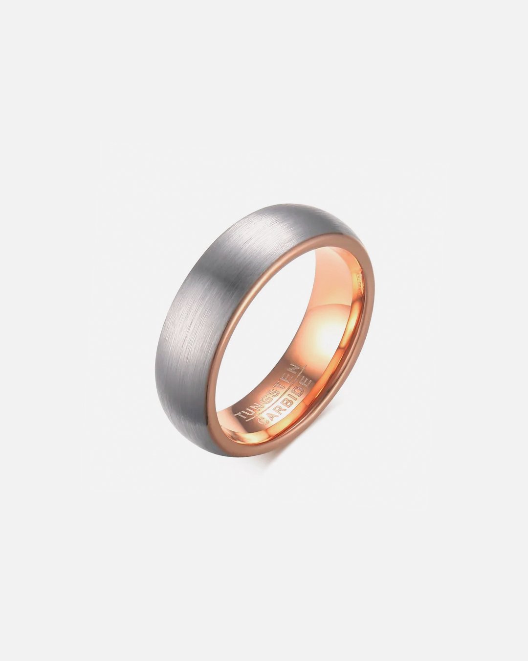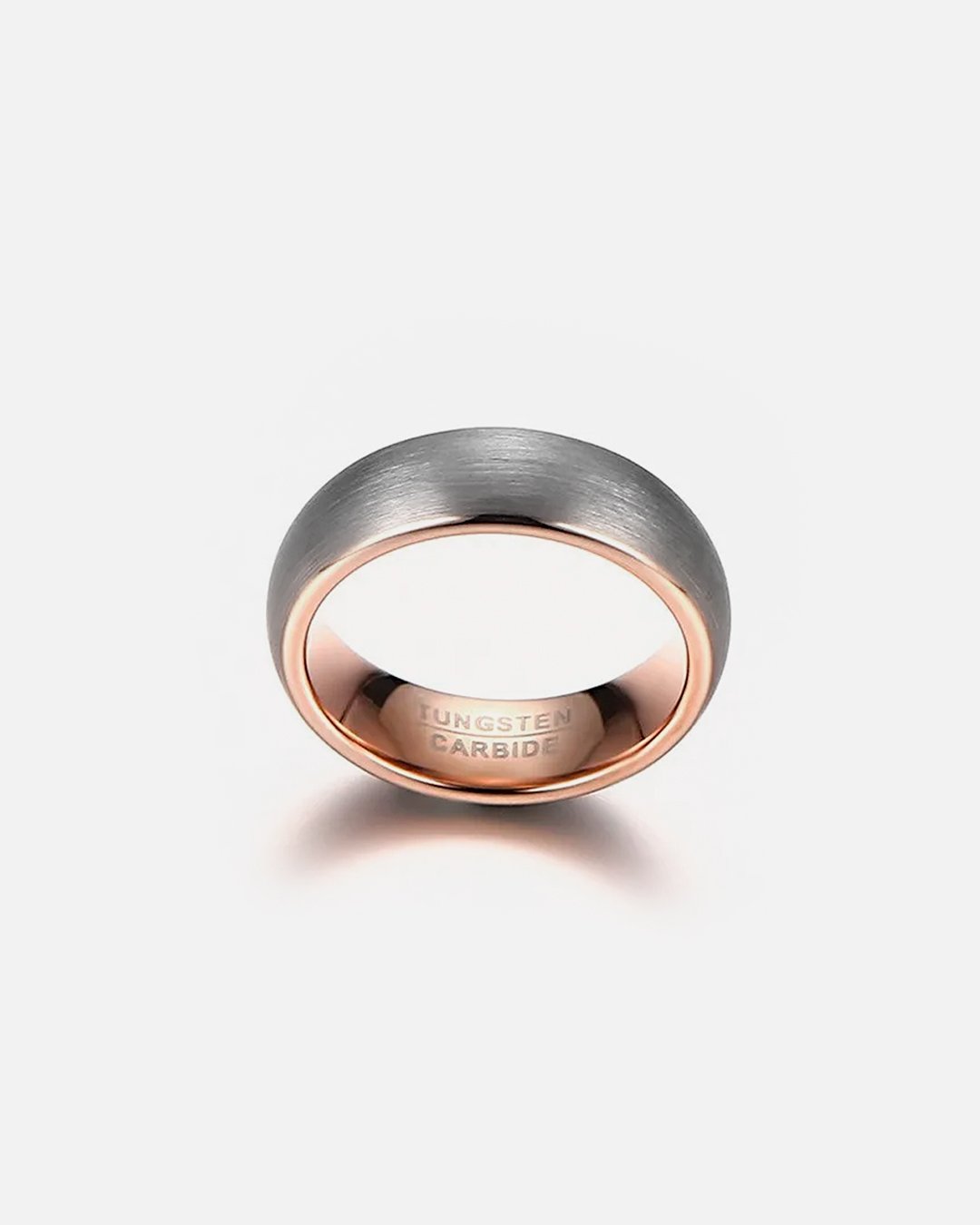 Anillo Tungsteno Gray con interior Bañado en Oro Rosa y exterior de Tungsteno cepillado con acabado mate