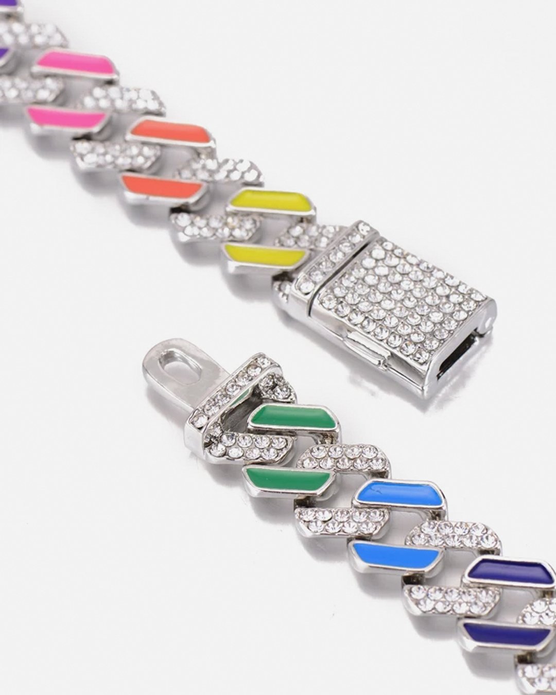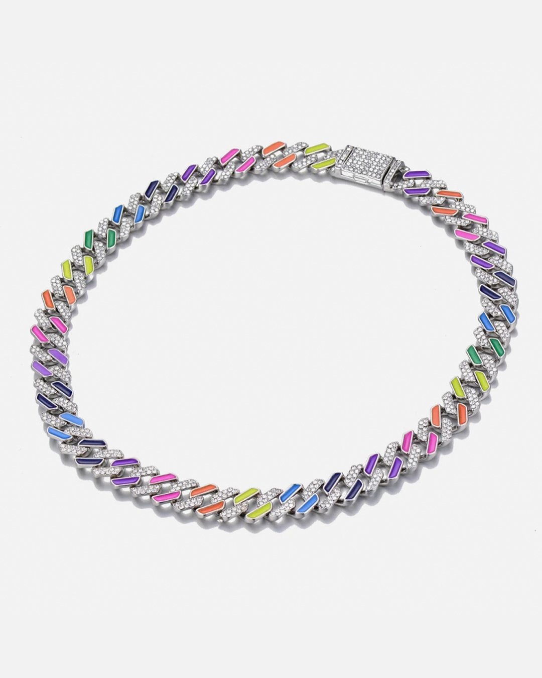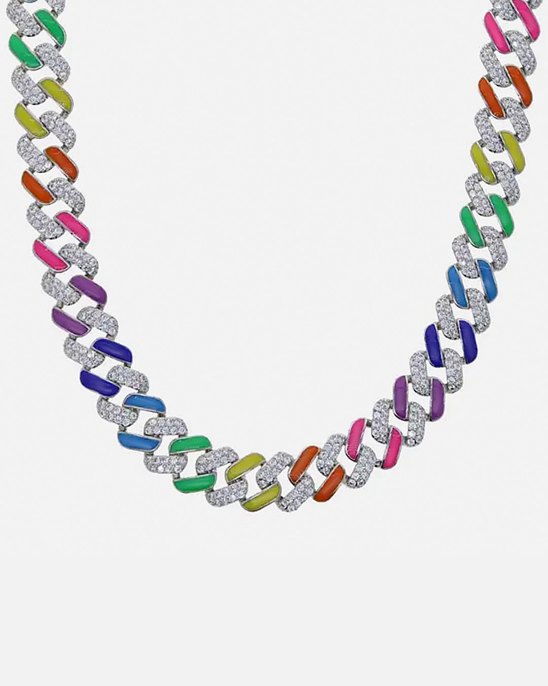 Cadena Cubana Ice Rainbow con detalles multicolor y Piedras Zircon Premium