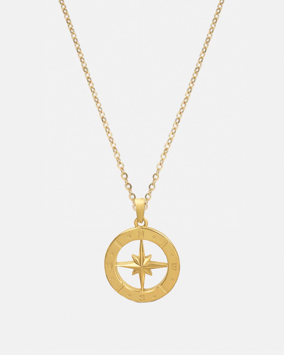 Collar Brujula Simple en Acero Quirúrgico Bañado en Oro 18kt
