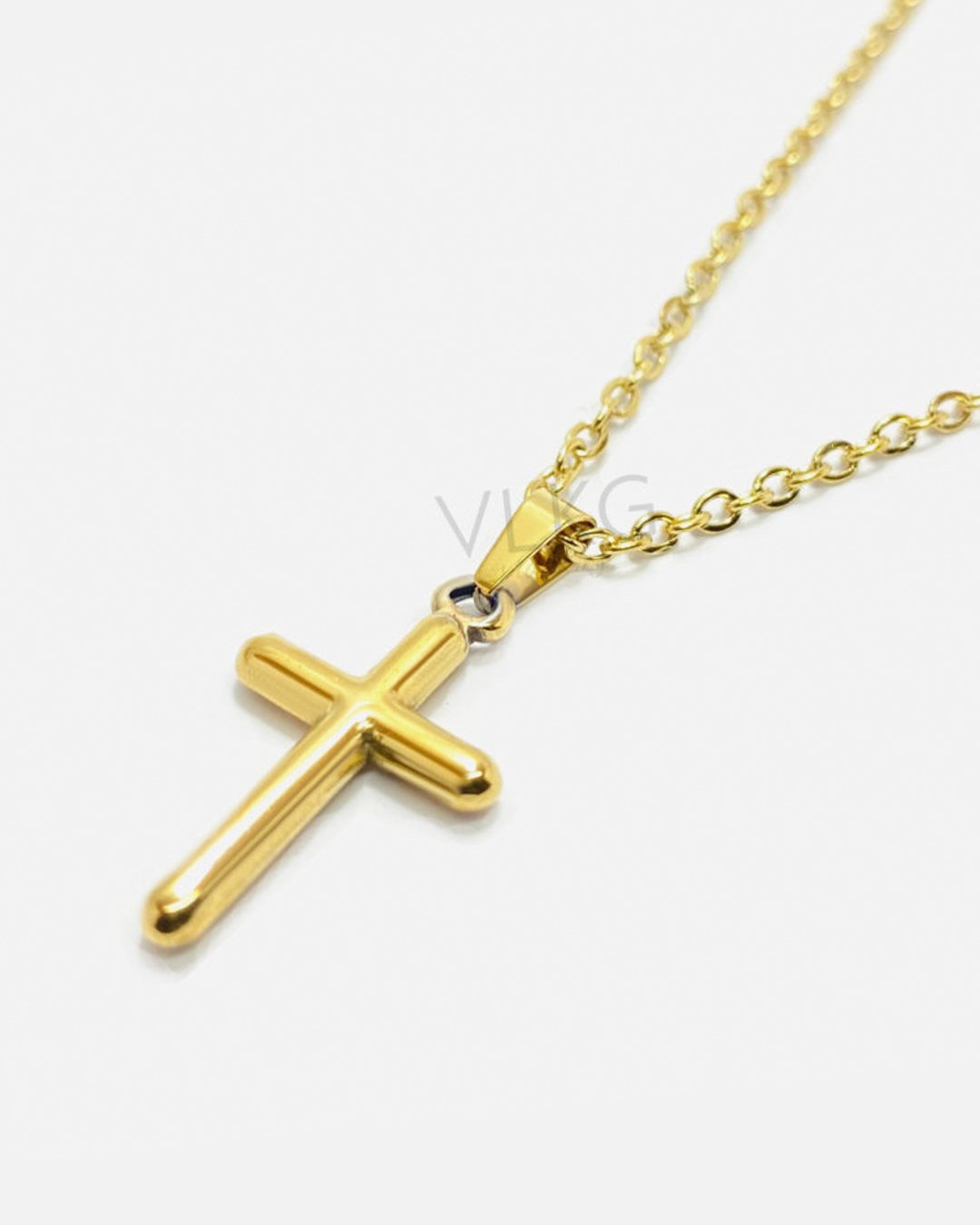 Collar Cruz Tubo en Acero Quirúrgico Bañado en Oro 18kt