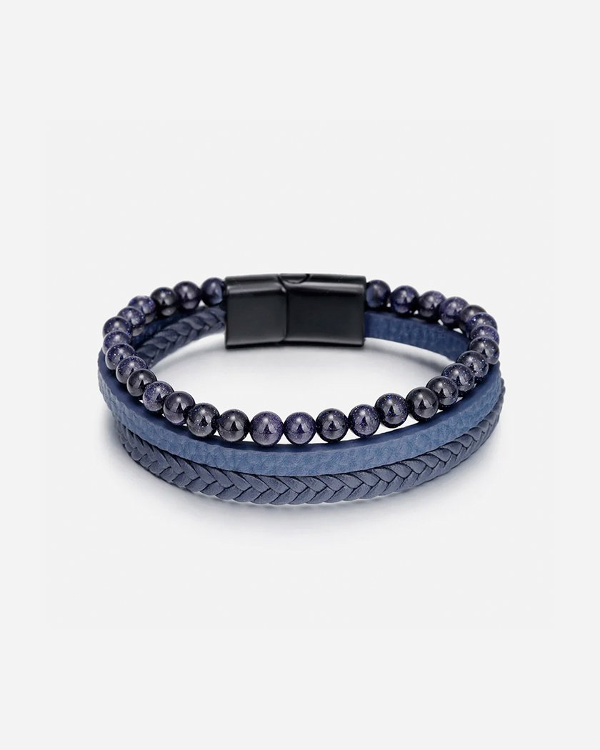Pulsera Cuero Planet Blue con Piedras Naturales Gold Stone