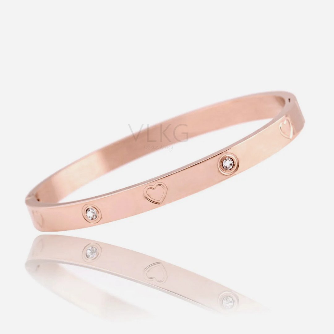 Pulsera Esclava Corazones en Acero Quirúrgico Bañado en Oro Rosa