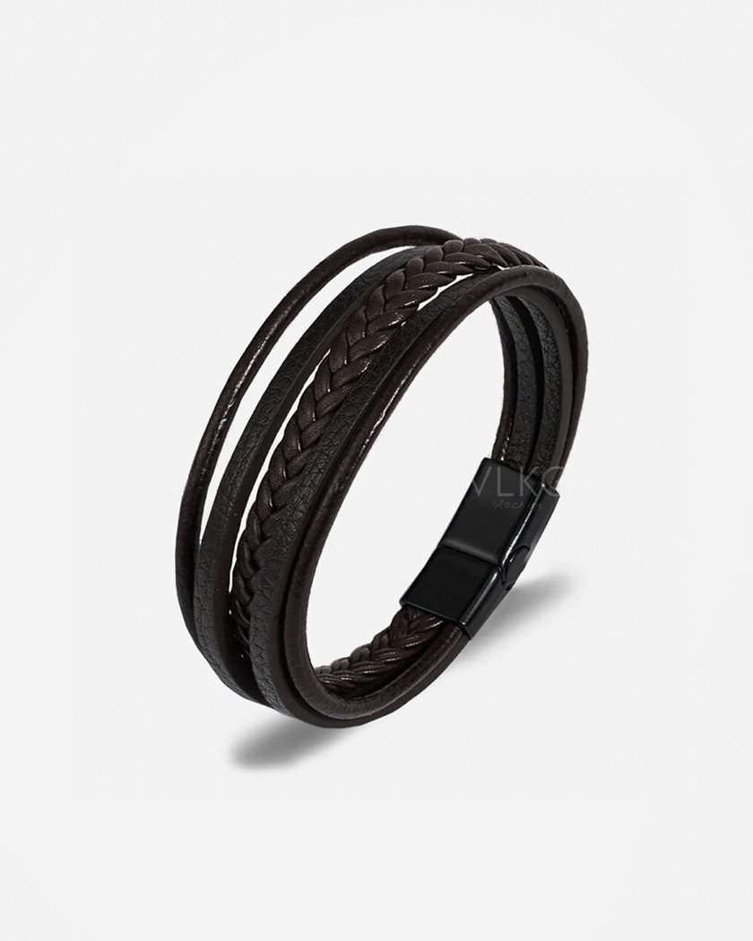 Pulsera Gothe Brown en Cuero Genuino y Acero Quirúrgico con Cierre Magnetico